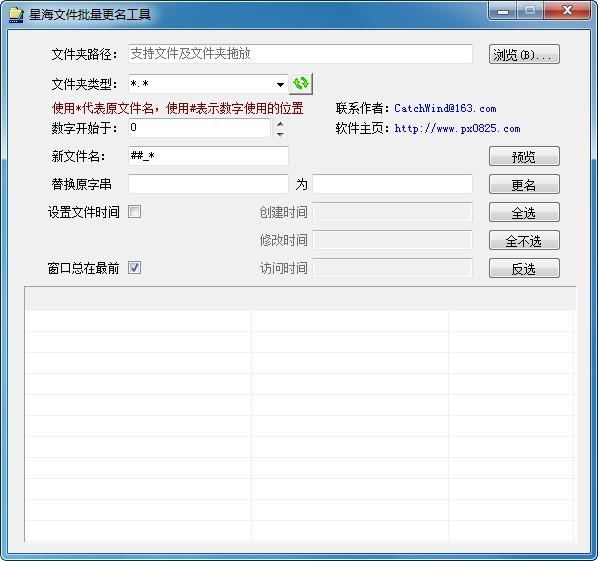 星海文件批量更名工具版是专门用于批量处理文件名的优秀软件。/[k0/]版本不仅支持文件和文件夹的拖拽,还支持文件扩展名和文件修改时间的批量更改。星海文件批量更名工具版本功能强大但简单。