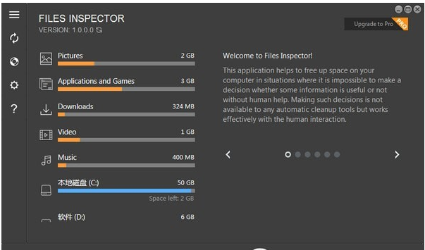 1.Files Inspector分析速度快,打开软件会自动统计磁盘文件大小。
