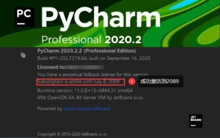 当您看到成功安装jetbrains-agent的提示时,表示激活成功。进入PyCharm主界面,点击 & # 8221;“关于 & # 8221;查看激活是否成功。