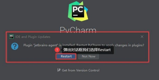 点击“重启”& # 8221;重启PyCharm2020的按钮。