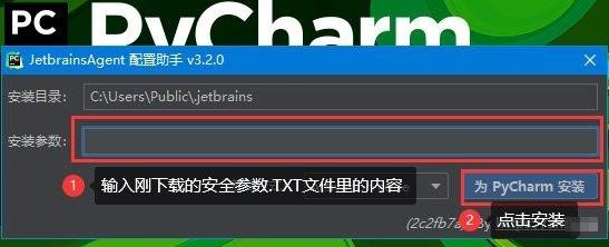 重启后,弹出如下对话框输入安装参数,点击tt文件中的“PyCharm安装按钮”。