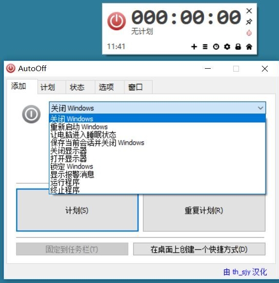 您可以关闭或重新启动、暂停、休眠窗口、关闭显示器、启动屏幕保护程序、锁定窗口、发出警报,以及使用简单的选项在指定的时间运行程序。