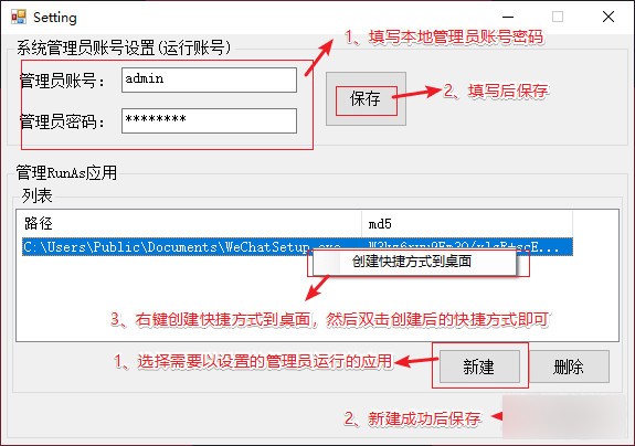 我觉得上面的方法有点复杂,所以我写了RAAdmin,RAAdmin是VB.NET写的一个小工具,可以简单的加密计算机的本地管理员和密码保存在机器的注册表中,用保存的密码(本地管理员)运行指定的程序。