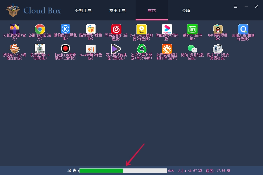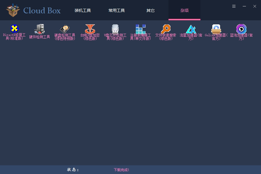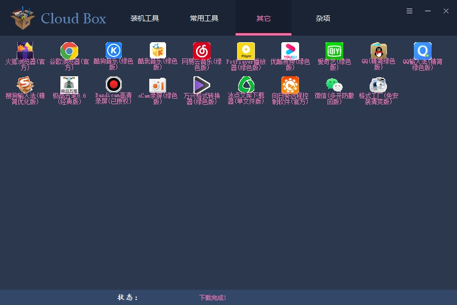 Cloud Box一款包含海量绿色版和破解版软件的工具,安装必备。右键可以预览软件界面。大一点的截图是缩放的,有些不清晰,少数没有截图,所以没有预览图。预览图是打包到资源表中的,所以比较大,有些是用硕下载的,大部分是直接连接到资源站的,有些是包含广告的,忽略就好。