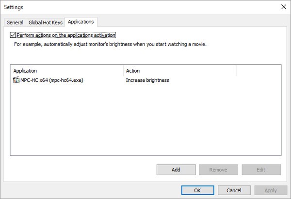 当您启动或切换到某些指定的应用程序时,自由监视器标记可以自动调整设置(当前是亮度和/或对比度)。