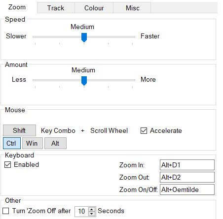 如果快捷键与其他功能冲突,请在设置中进行更改,设置中还包含其他选项,如定时自动退出缩放和高级选项切换。