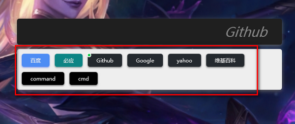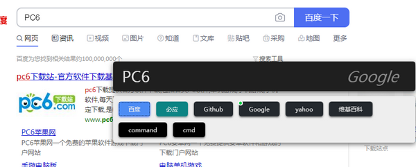 默认支持百度、必应、GITHUB、谷歌、cmd等搜索引擎。