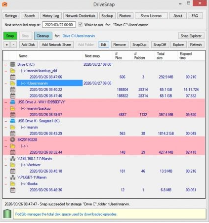 将任何或所有DveSnap驱动器/文件夹/快照备份到快照思洛文件;将它们还原到任何运行DveSnap的计算机上。