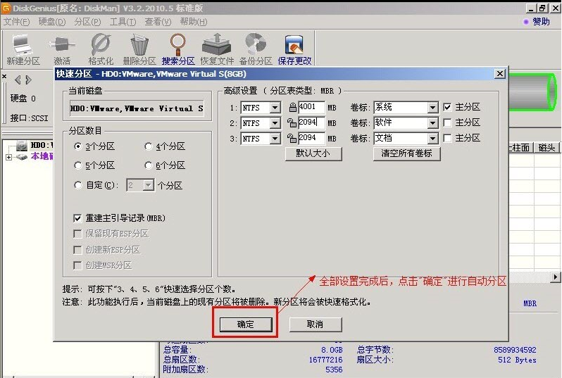 步骤9:修改分区数量的容量。并点击其他分区容量的空白处自动调整所有容量。