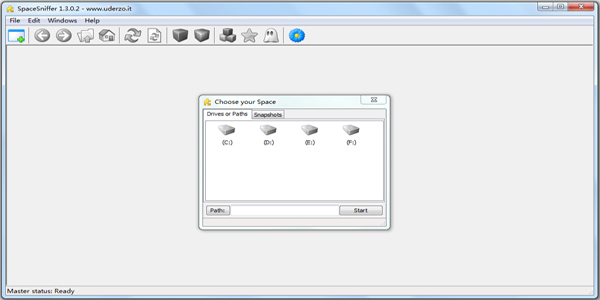 SpaceSniffer为您提供了许多开始扫描的方法。当您启动应用程序时,会出现一个启动对话框,询问您要扫描什么。您可以: