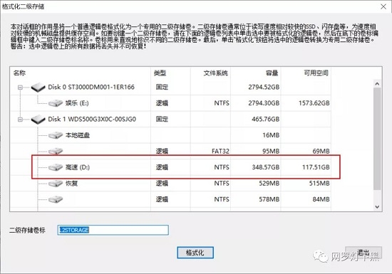 下面的二级缓存是指从固态硬盘中划分出空间,提供给机械硬盘进行缓存。如果你有额外的固态硬盘,你可以使用它们。因为需要格式化固态硬盘,所以不做演示。
