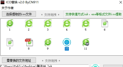 ICO替换是一个完美的透明替换、拖放和去除阴影的工具。网上有不少exe文件,但是鸡肋太多了。这个工具短小精悍,414k,支持ink、exe等快捷文件的ico提取!