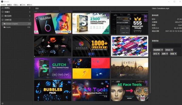 Aetodo(AE模板和声音素材管理工具)是一款通过方便快捷的搜索和分类搜索,快速定位目标素材、AE模板和声音素材的管理工具。这个软件可以快速预览AE模板和视觉音效,大大提高了大量素材的检索时间。