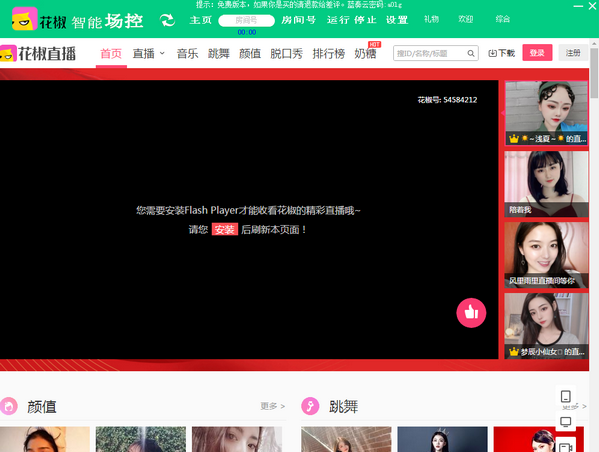 提示:房间号是直播地址链接上的群号,不是花椒号。第一次打开软件进入房间,点击房间号即可获得。下次直接运行就行了。