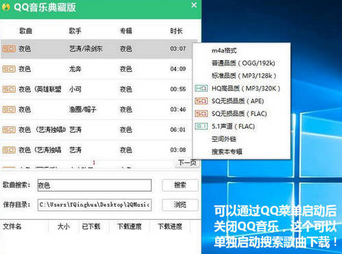 集成无损下载功能,支持歌曲搜索、无损下载、外链等。
