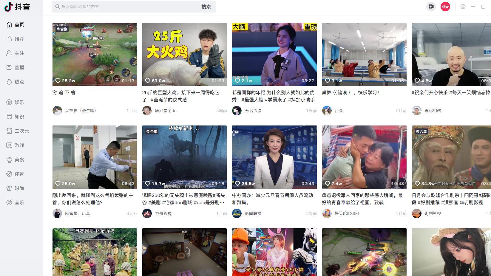 抖音电脑版是一个小巧、精致、实用的PC端短观制作平台。抖音电脑版于2021年1月19日由抖音推出,功能上与抖音APP相同,但提供了不一样的体验,横屏资源很多,大屏刷抖音更过瘾!