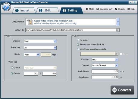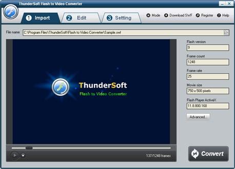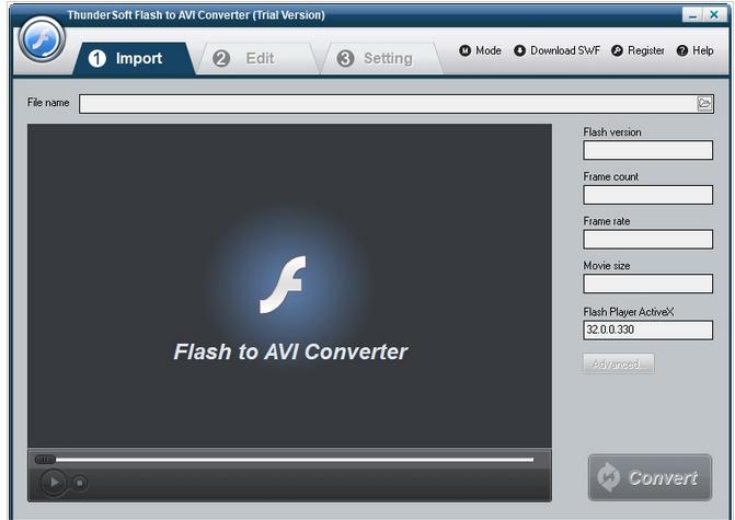 在“导入”页面上,单击浏览器按钮添加swf文件。你可以得到关于这个文件的闪存,并在转换前预览。