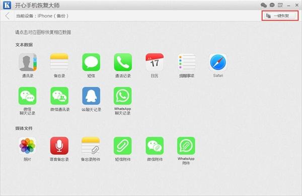 很多用户在使用iTunes备份时,为了恢复方便,会将iTunes备份转移到移动硬盘上。那么如何用开心手机恢复扫描这部分数据呢?并且实现一键恢复?