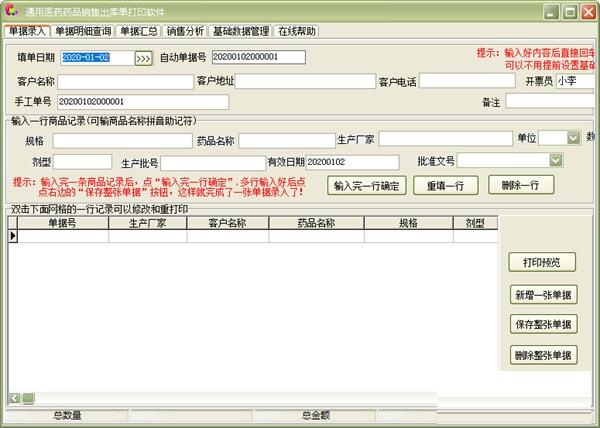 通用医药药品出库单打印软件版打印商品记录软件能输入多少行就打印多少行,并且可以自动逐页打印,可以快速找到上一张单据和下一张单据。