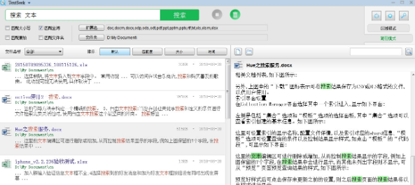 1.找出所有单词“”都可以匹配“Euing”。当Windows的默认搜索搜索了很久,最后告诉你找不到了,甚至有些文件就在你眼皮底下也找不到,往往让人很生气。通过引入先进的索引技术,TextSeek可以解决这类问题。它采用全文扫描技术,找出所有的词(不会因为分词错误而丢失),像百度一样显示搜索结果。其中,区域模式采用预扫描技术加快搜索速度(需要先定义搜索范围并扫描),搜索结果只需几秒钟即可反馈。2.支持各种文档的可搜索文件名和具体内容TextSeek支持多种文档格式,包括Word、Excel、Powerpoint、PDF、RTF等。的所有格式解析都集成在TextSeek中,不需要额外的包。与其他桌面搜索工具不同的是,文档的文件名和所有文本内容都集成到了搜索引擎中,从而避免了文本遗漏。3.改善搜索体验,自定义搜索范围。在TextSeek中,可以自定义“搜索区域”,即搜索范围(包括要搜索的文件夹和文件类型)。例如,您可以在一个区域定义代码文档,在另一个区域定义书写文档,这支持单独搜索。此外,TextSeek提供了四种排序方法和过滤器(大小写/全字匹配/异常排除)来提高搜索精度。该软件还显示了简短的摘要和带有关键字突出显示的内容预览,这有助于用户更高效地定位文档。