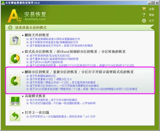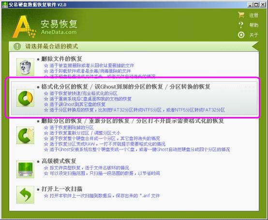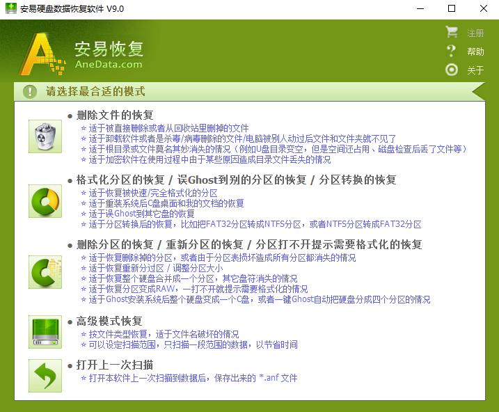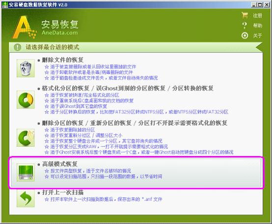 四种恢复模式(请仔细阅读选项说明并选择合适的扫描模式)