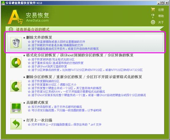 最新版本的安易硬盘数据恢复软件是一款具有全面文件恢复功能的软件。安易硬盘数据恢复软件电脑版可以恢复回收站删除的文件、shift+键直接删除的文件和目录、快速格式化/完全格式化分区、损坏的分区表等数据。