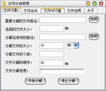 文件分合密使是一款多功能的文件管理软件,支持文件分割、文件合并、文件MD5值等功能。界面简单易做。有需要的朋友快来下载吧。