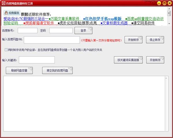 百度网盘批量转存工具最新版本是一款绿色免安装、简单易用的工具,用户可以通过它将百度网盘公开分享的文件批量转移到自己的网盘上。这个百度网盘转储工具的功能非常实用。用户只要输入一个百度网盘共享的文件链接地址,所有的共享文件都可以保存到自己的网盘。