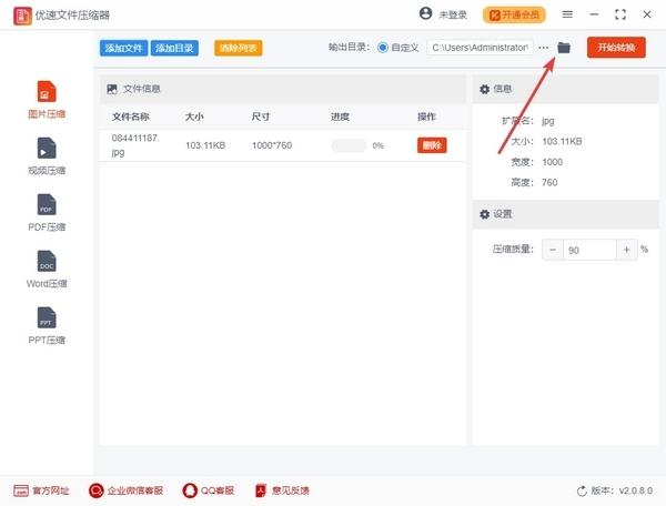 3.单击开始转换开始文件压缩过程。