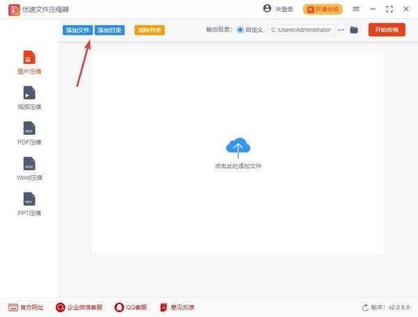 1.单击“添加文件”或“添加目录”以导入要压缩的文件。