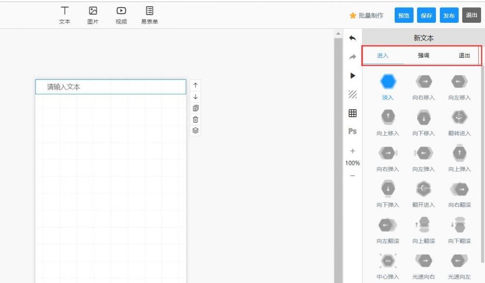5.单击文本框和右侧组件栏以设置动画效果。