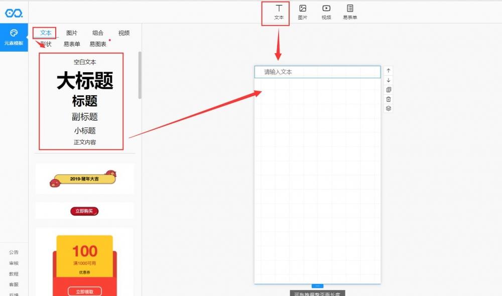 如何给易企秀长页面添加文字?