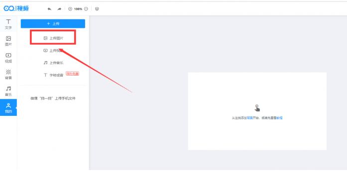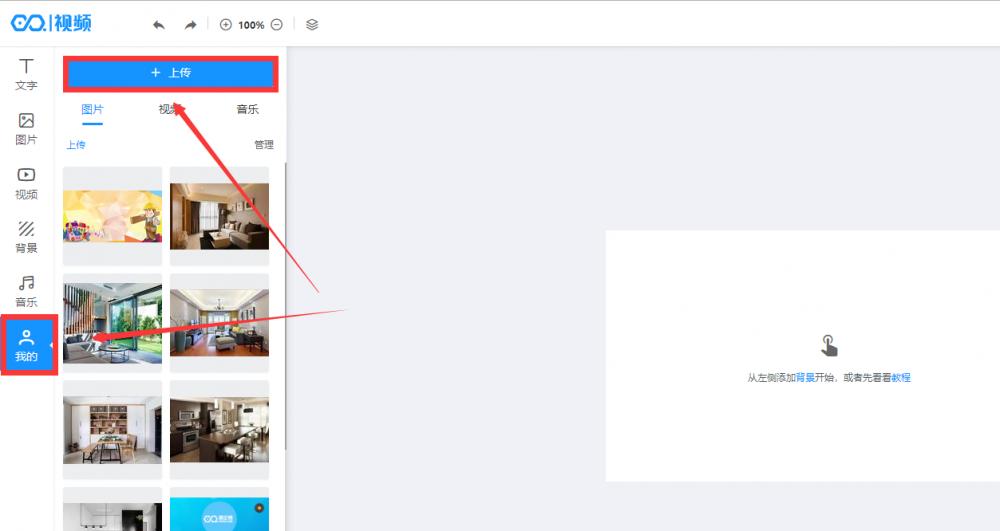 点击左侧【我的】【上传】上传图片。