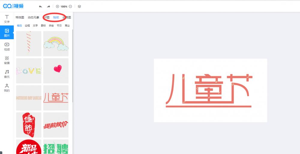 4.添加贴纸:根据分类过滤,找到需要的贴纸。
