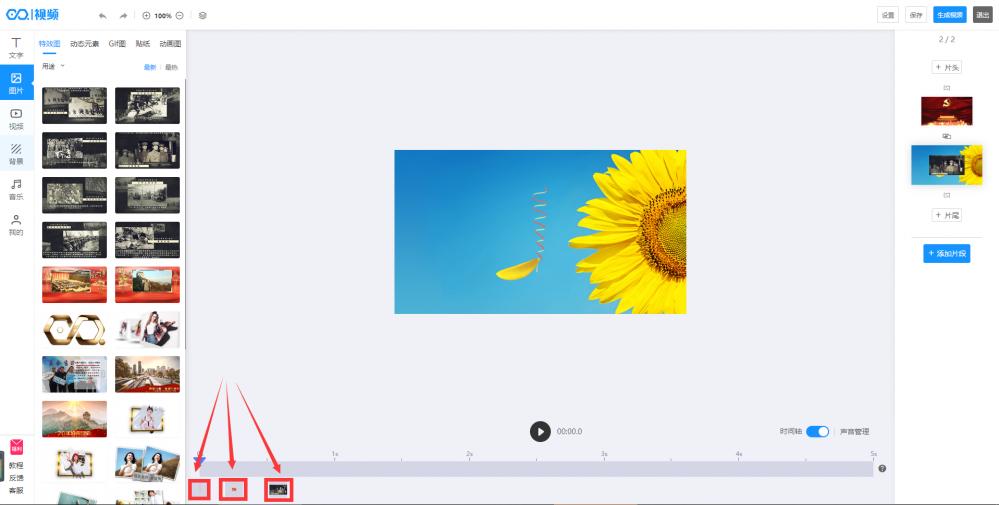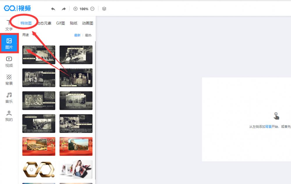 1.添加特效图,先预览效果,点击添加到编辑页面,改右边页面的文字和图片。