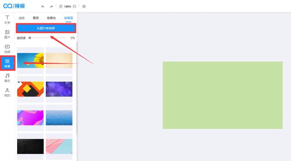点击左边的背景图设置背景。您可以设置背景颜色、背景图和动态背景。设置背景图片以调整透明度。