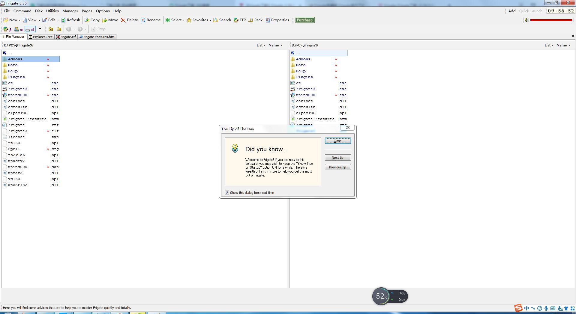 最新版本的Fgate支持基本的复制、拷贝、删除文件或目录、建立目录、更改文件名等等。内置左右窗口,支持长文件名,常驻系统任务栏,支持打开arj、ha、lha、rar、zip、zoo等压缩文件,内置文件查看和编辑功能,查看txt、rtf、dbf文件,编辑txt、rtf文件,查看图形文件,支持幻灯片放映功能。此外,还可以自定义很多快捷功能,包括快捷服务器、电脑、系统信息、电话簿、笔记本等等。