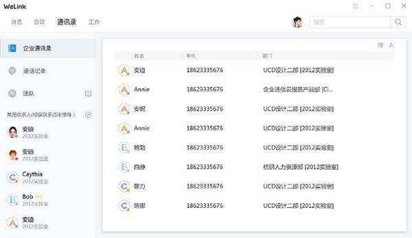 ⑥智能搜索:不需要穿越人海去找人,优先匹配常用联系人和部门联系人。