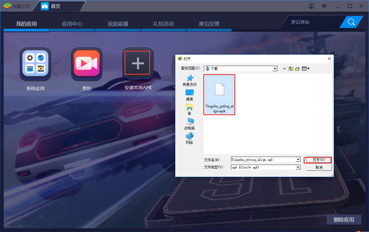 2.成功安装后,打开模拟器并单击Install Local apk。