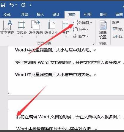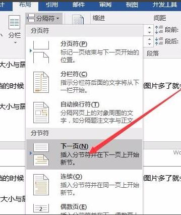 4.如果您想要将页面设置为首页,则可以导航到该页面,单击菜单栏中的布局选项,然后单击工具栏中的分页符选项。