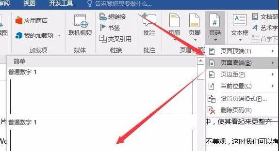 2.单击“插入页码”选项。从弹出选项中选择[页面底部]和样式。你可以自己选择。