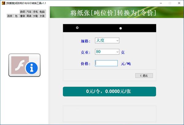 3.双击打开进入纸张吨价与令价转换工具软件界面。