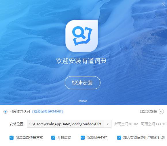 首先在这个站点下载最新版本的有道词典安装包,双击运行。