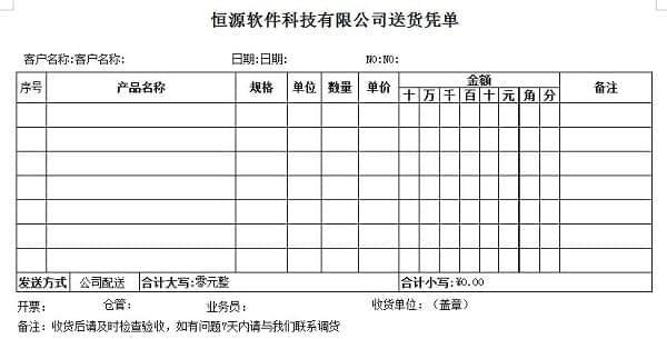 恒源好用发货单打印模板介绍