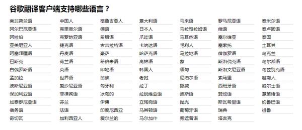 谷歌翻译客户端支持哪些语言?