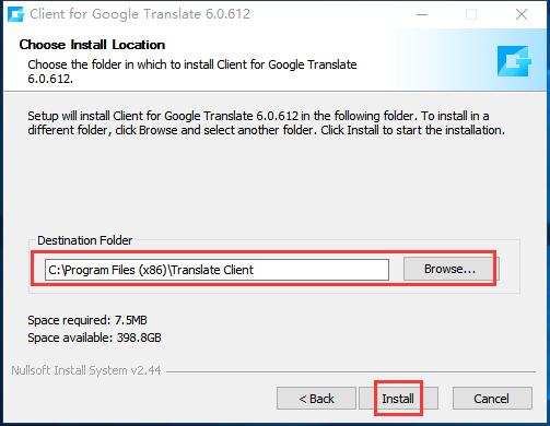 2.选择适当的安装位置,然后单击安装。