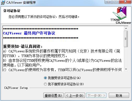 1.在下载资源库中下载kdh阅读器,解压到当前文件夹,点击其中的CajViewer 7.3.141.self.exe应用,进入安装向导界面,然后点击下一步,来到许可协议界面,勾选接受协议,点击下一步。