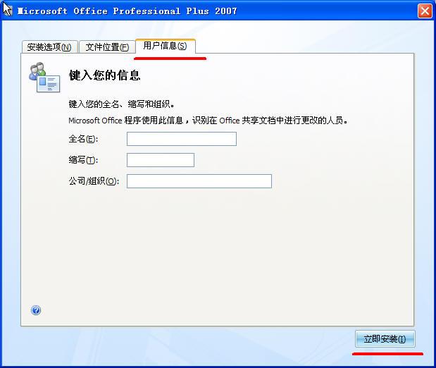 单击任意选项卡下的[立即安装]开始安装office2007。