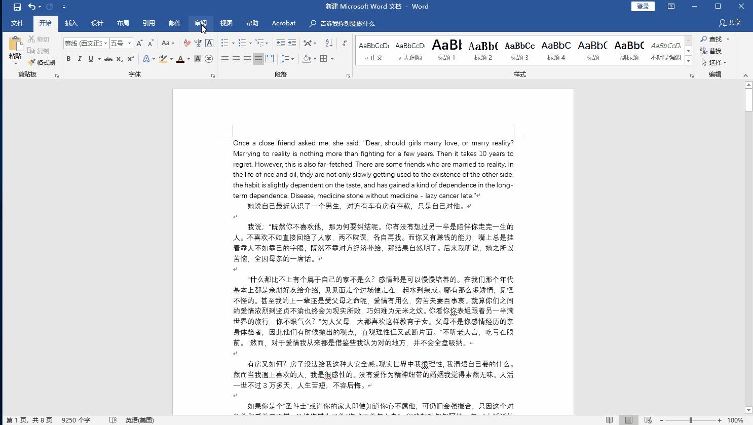 word2019版本自带翻译功能,就是看完其他语言的文章,可以直接在word中翻译。翻译功能在“审阅”选项卡中。