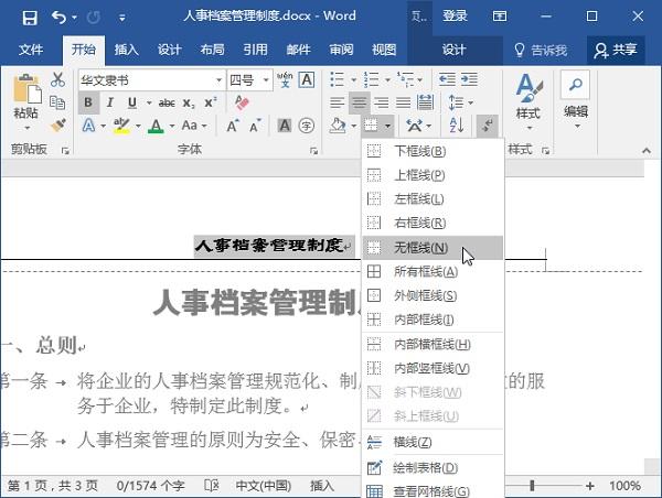 在文档中添加页眉后,有时页眉中会有一条额外的水平线,不能通过[delete]键删除。这时候可以通过隐藏边界线来实现。